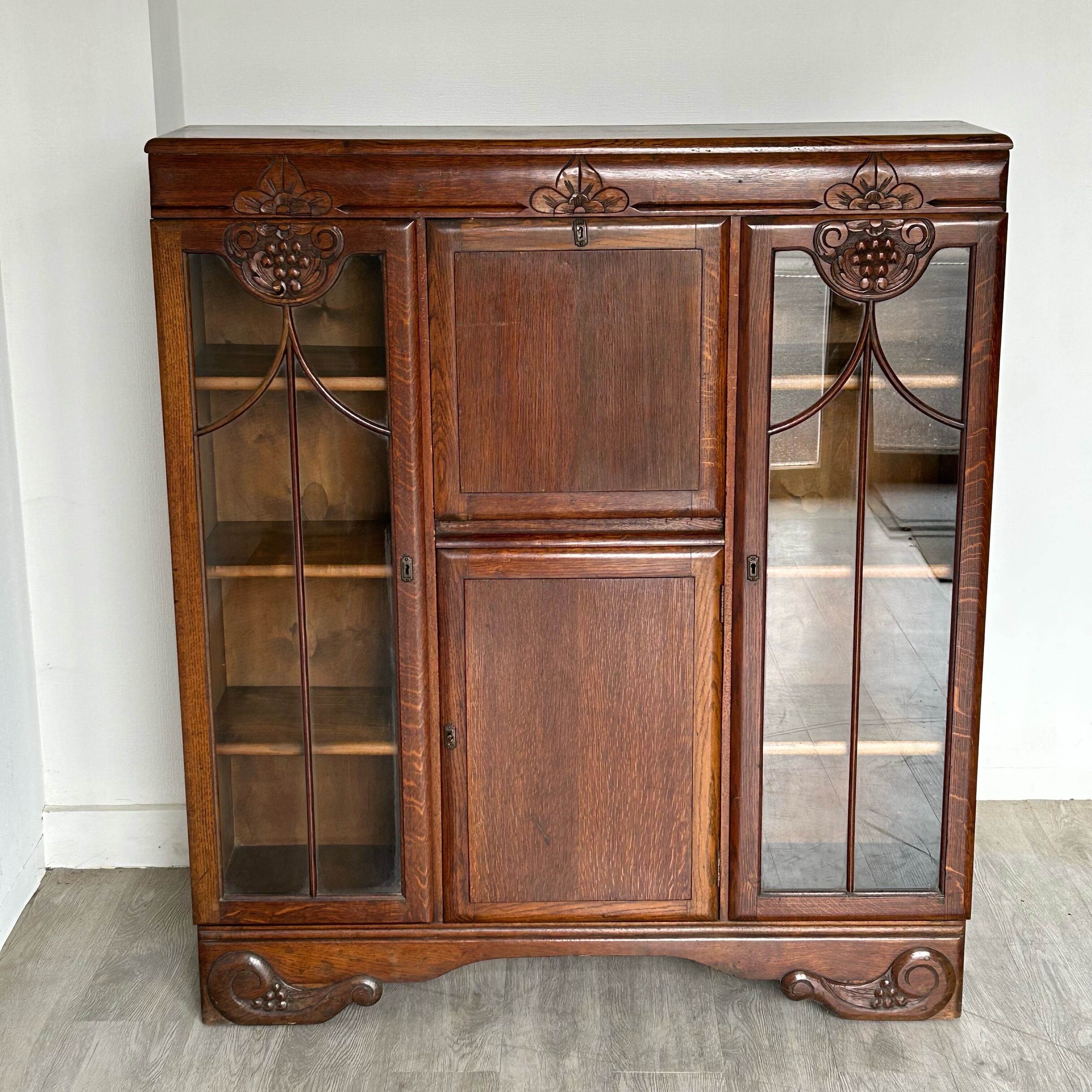 両脇にガラスキャビネット、中央にビューロやドレッサーなどを