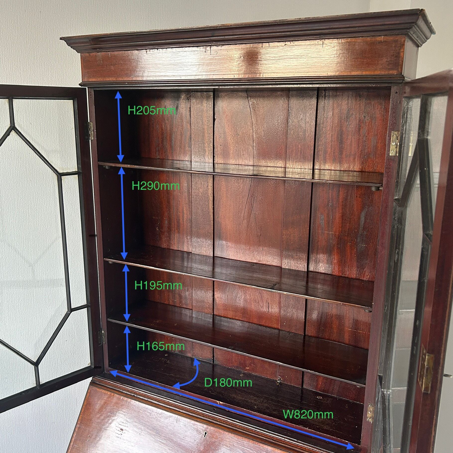 上部ブックケースとビューロ部分は2分割出来る為搬入もしやすいかと思います