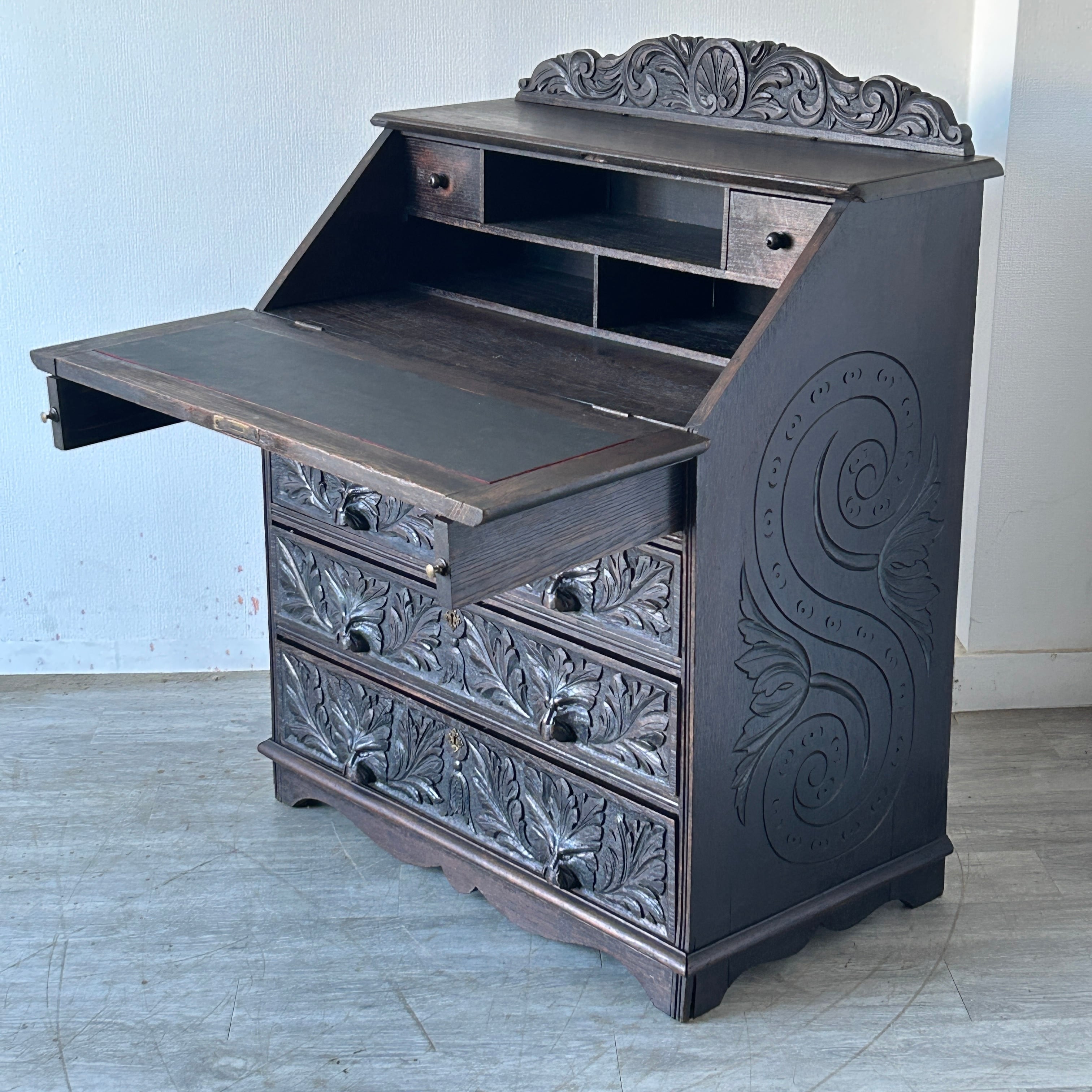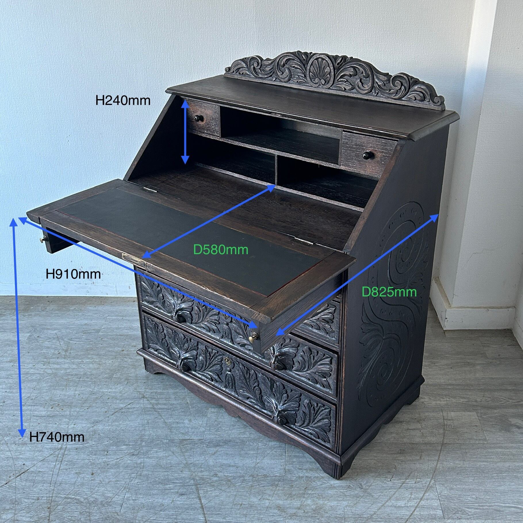 ビューローとは扉を開けるとデスクになる便利な家具です。