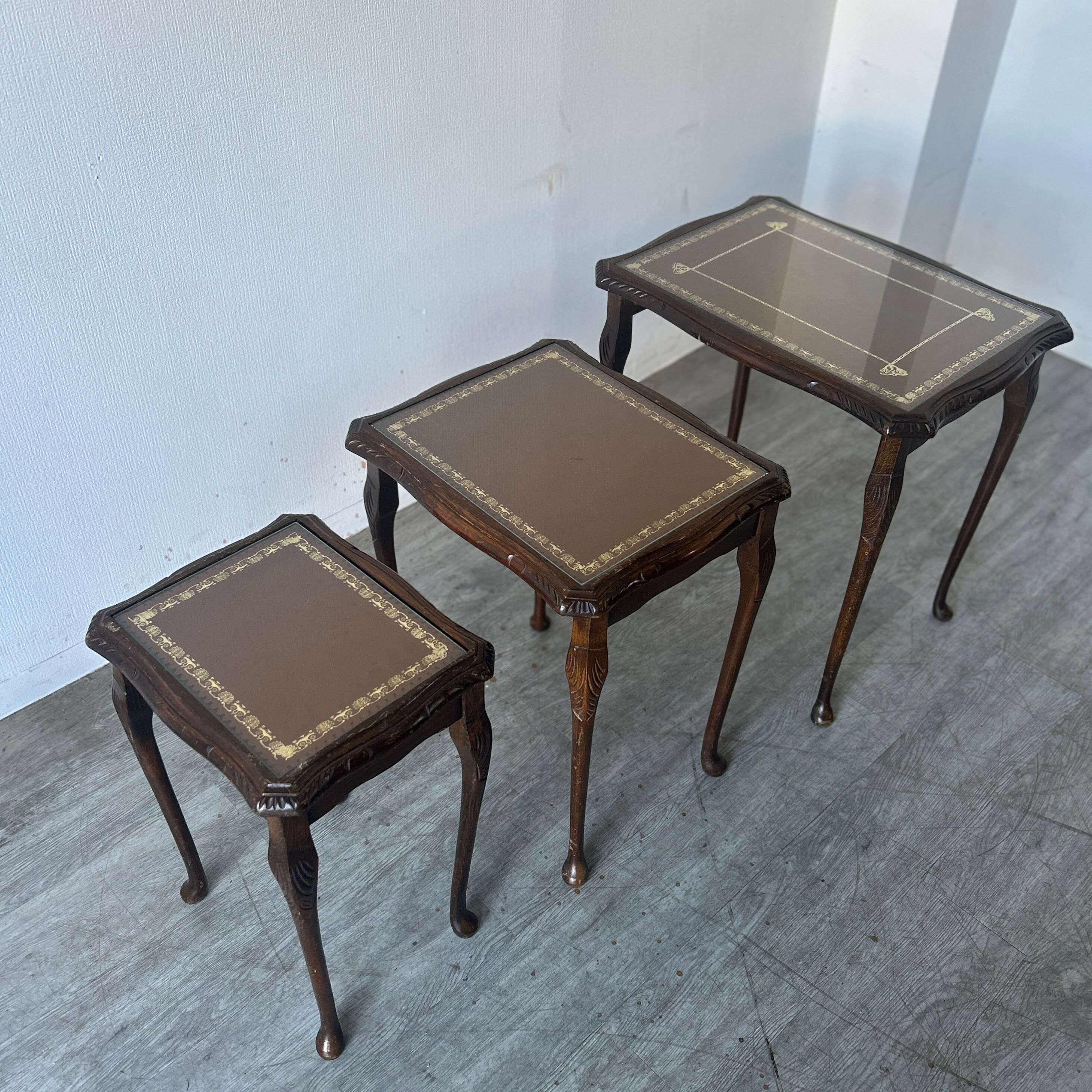 1960年頃製作の ガラストップ ネストテーブルをイギリスより輸入致しました。