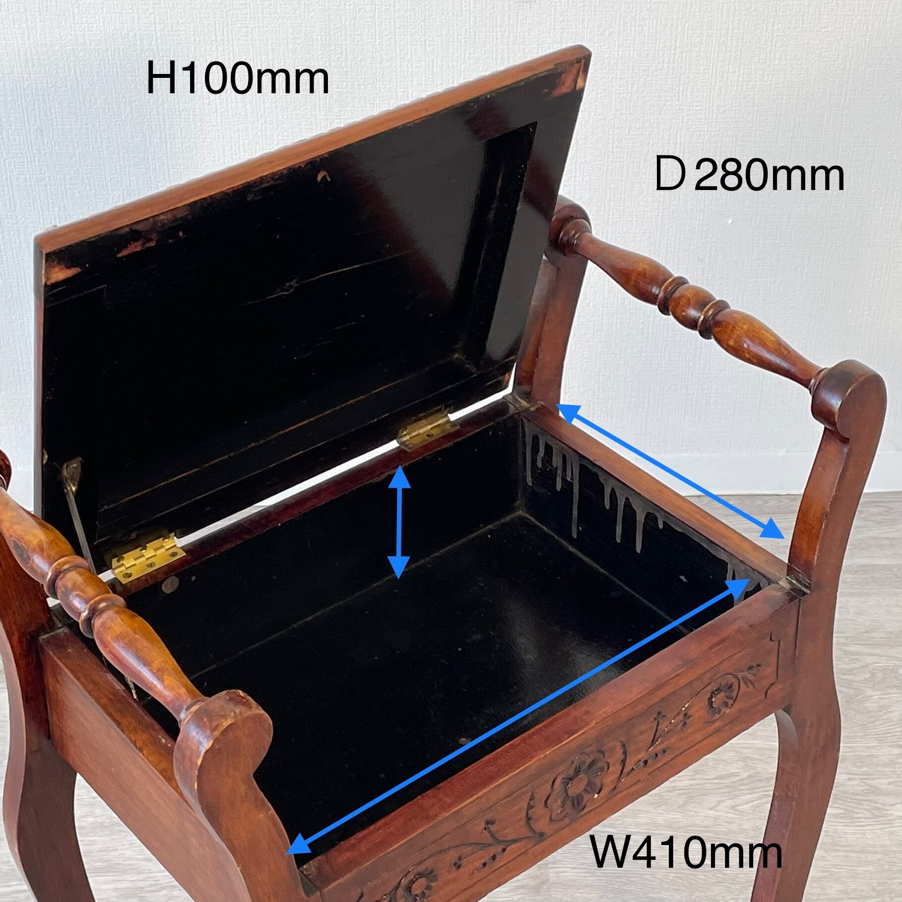アンティーク・ビンテージ家具ならではの経年によります使用傷、凹み傷、色むらがございます。