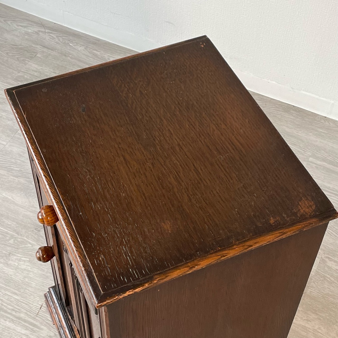 アンティーク・ビンテージ家具ならではの経年によります使用傷、凹み傷、色むらがございます。