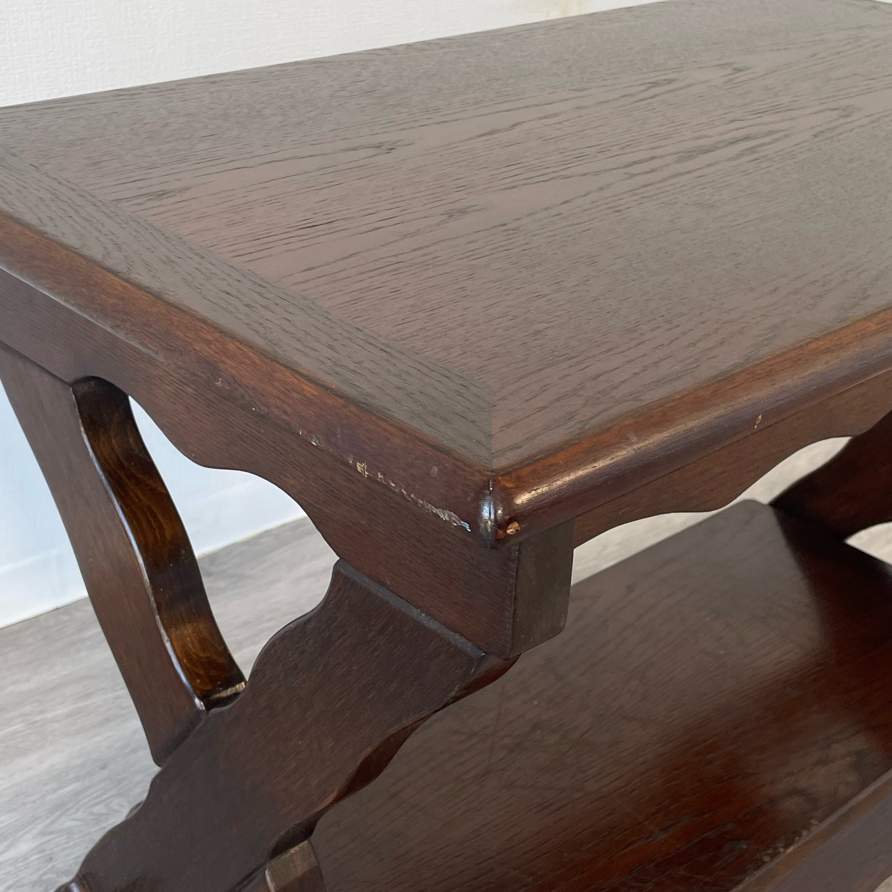 アンティーク・ビンテージ家具ならではの経年によります使用傷、凹み傷、色むらがございます。<BR>