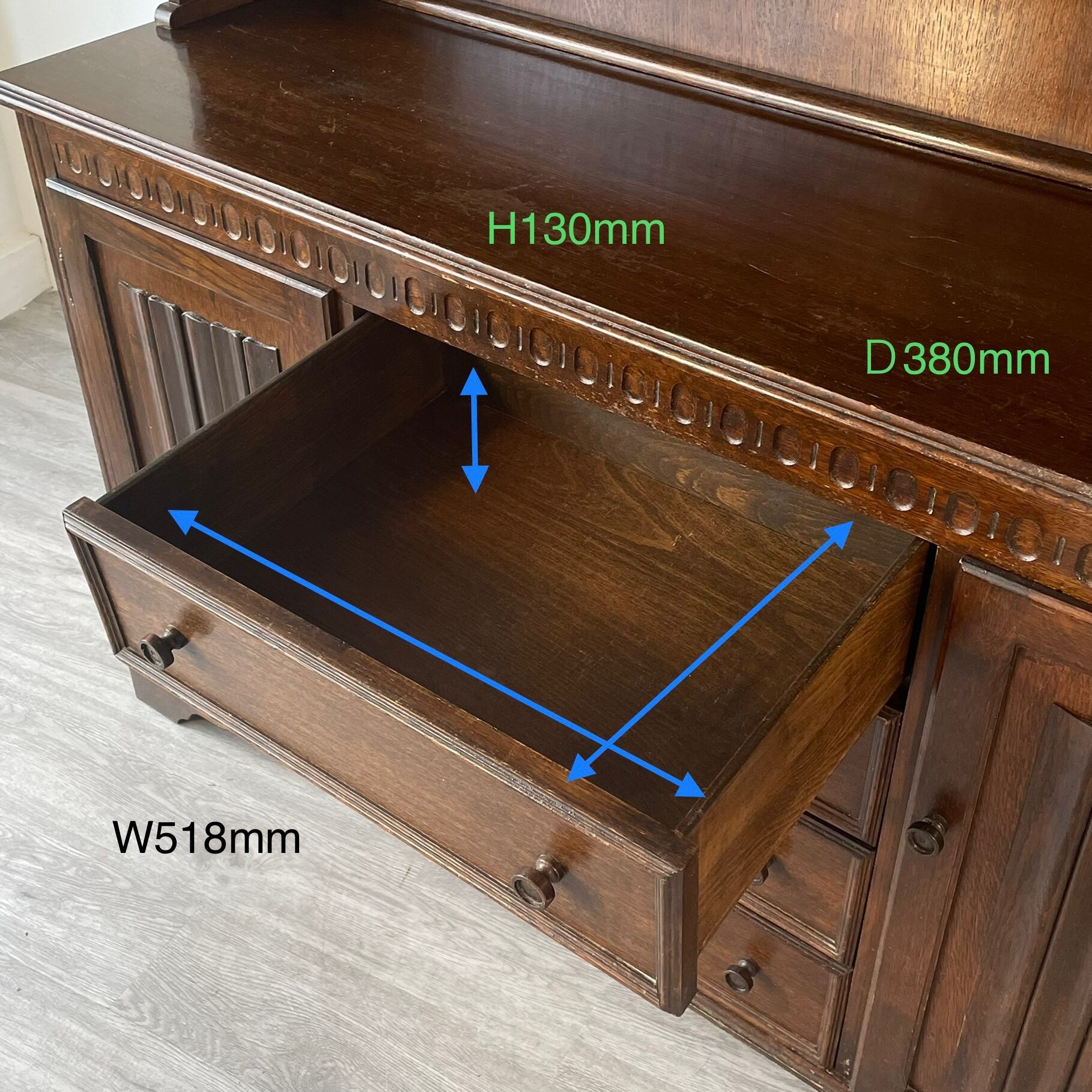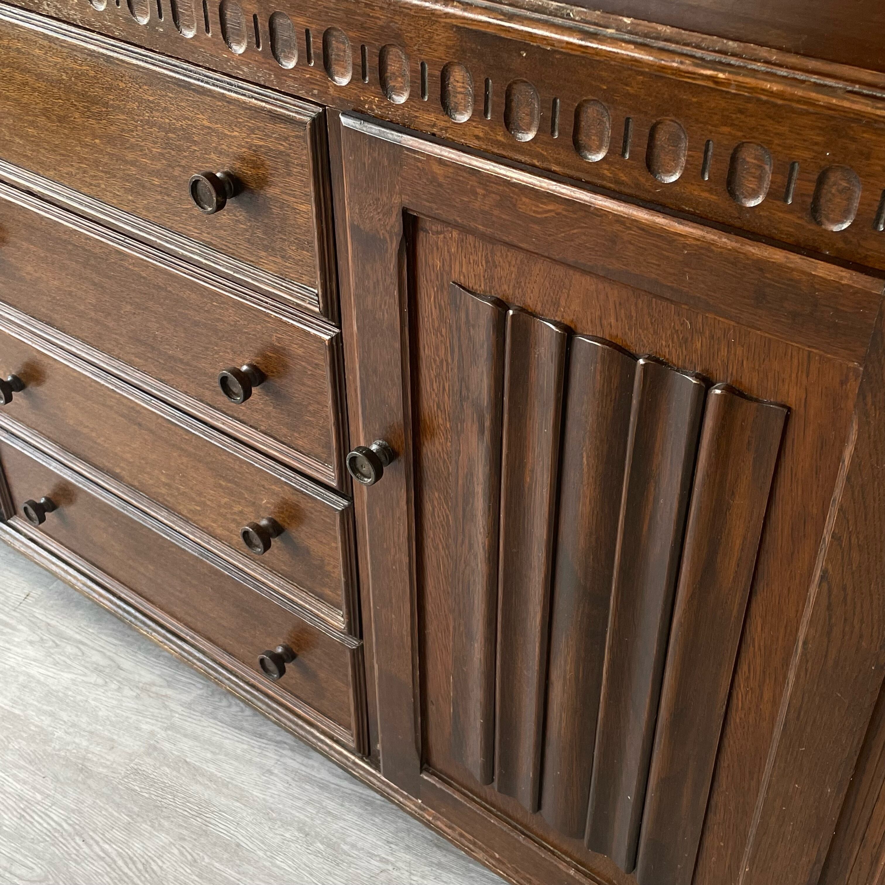 Large Carved Linenfold 4 Drawer Dresser