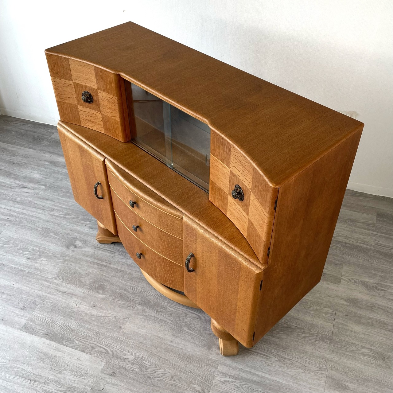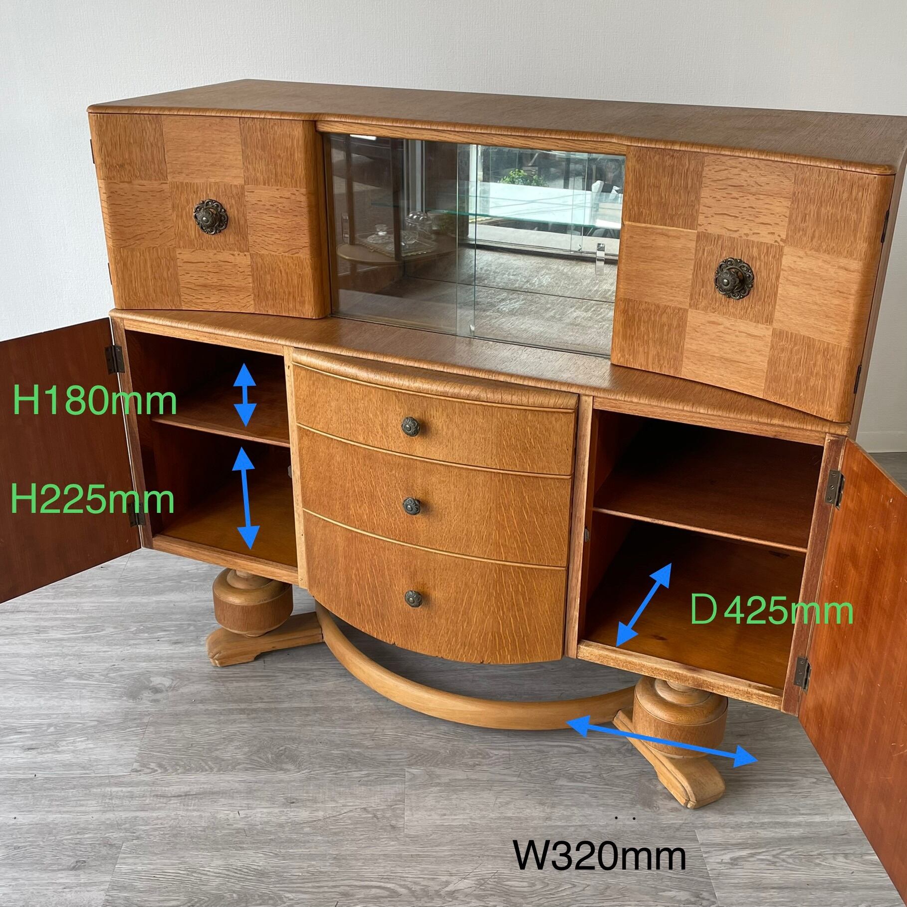 HS5-177-132B Glazed 3 Drawer Sideboard Cabinet
