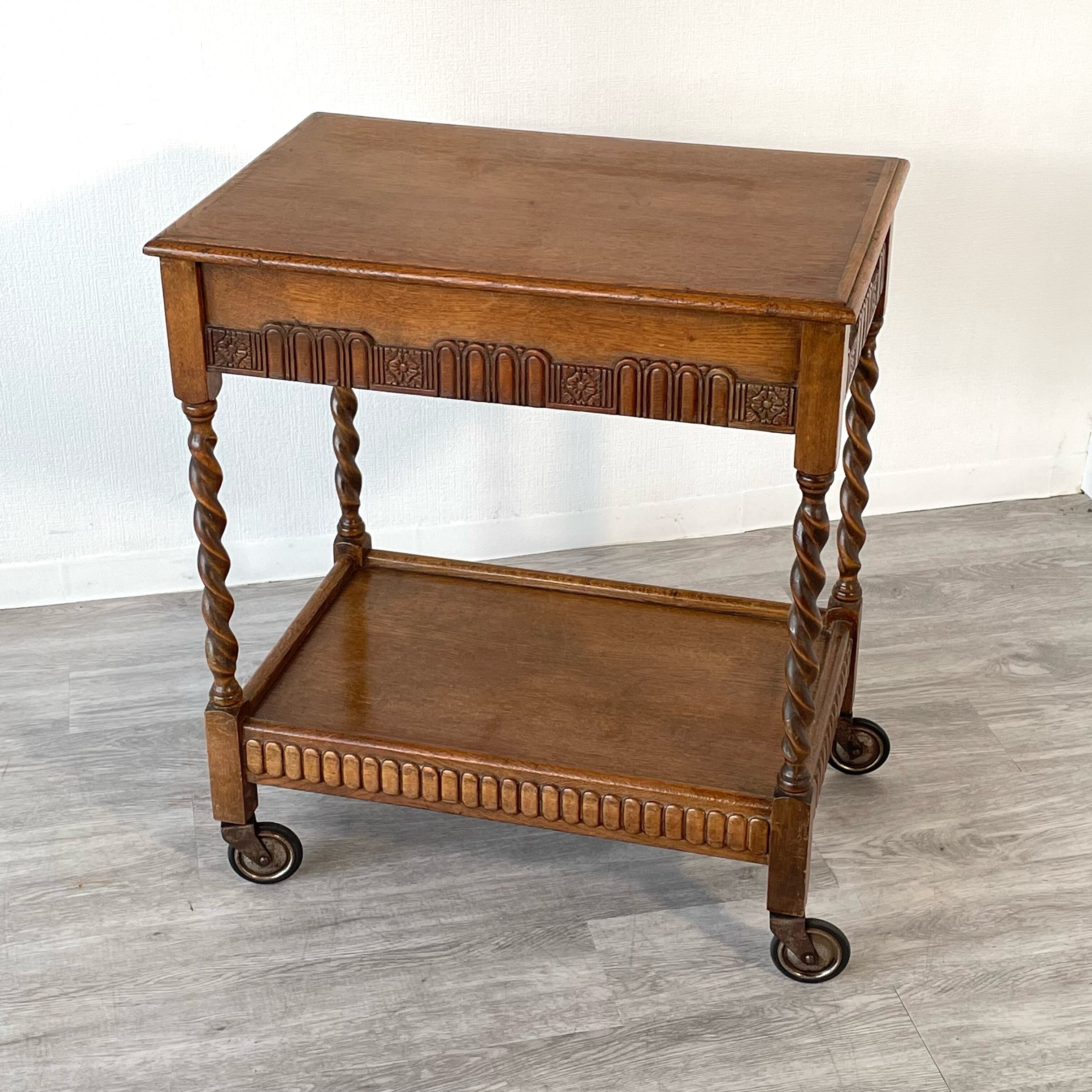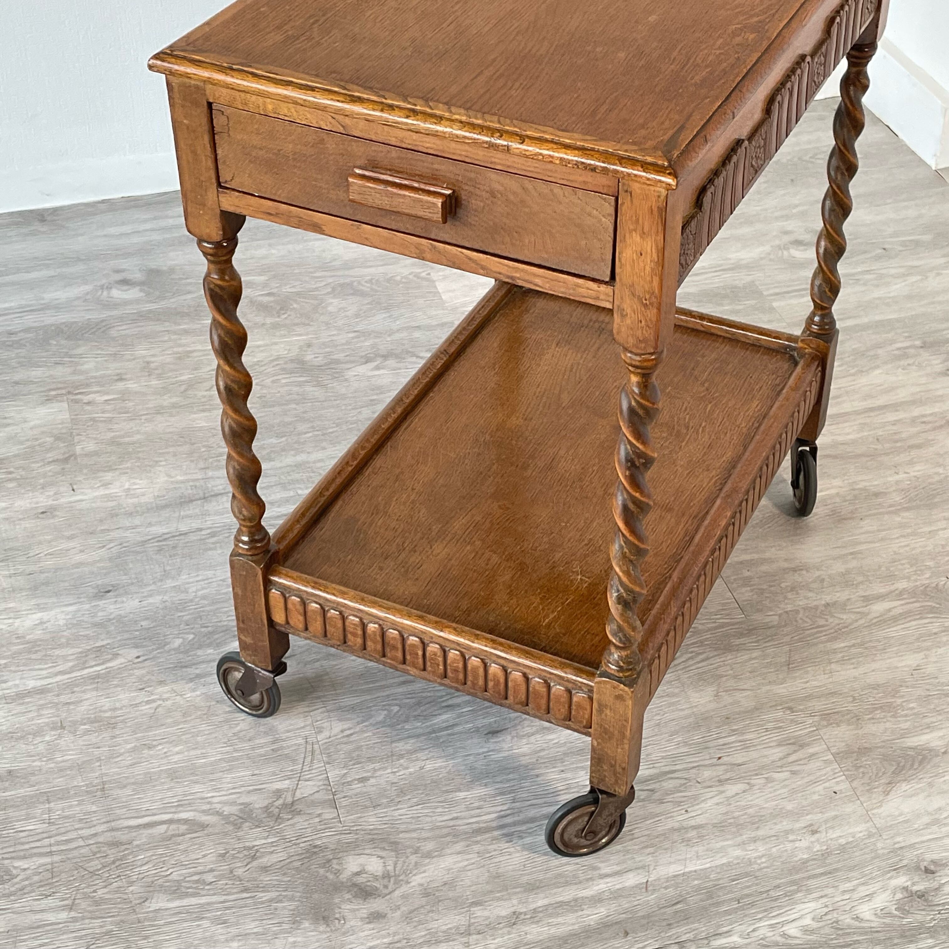 2 Tier Barley Twist Tea Trolley with Drawer