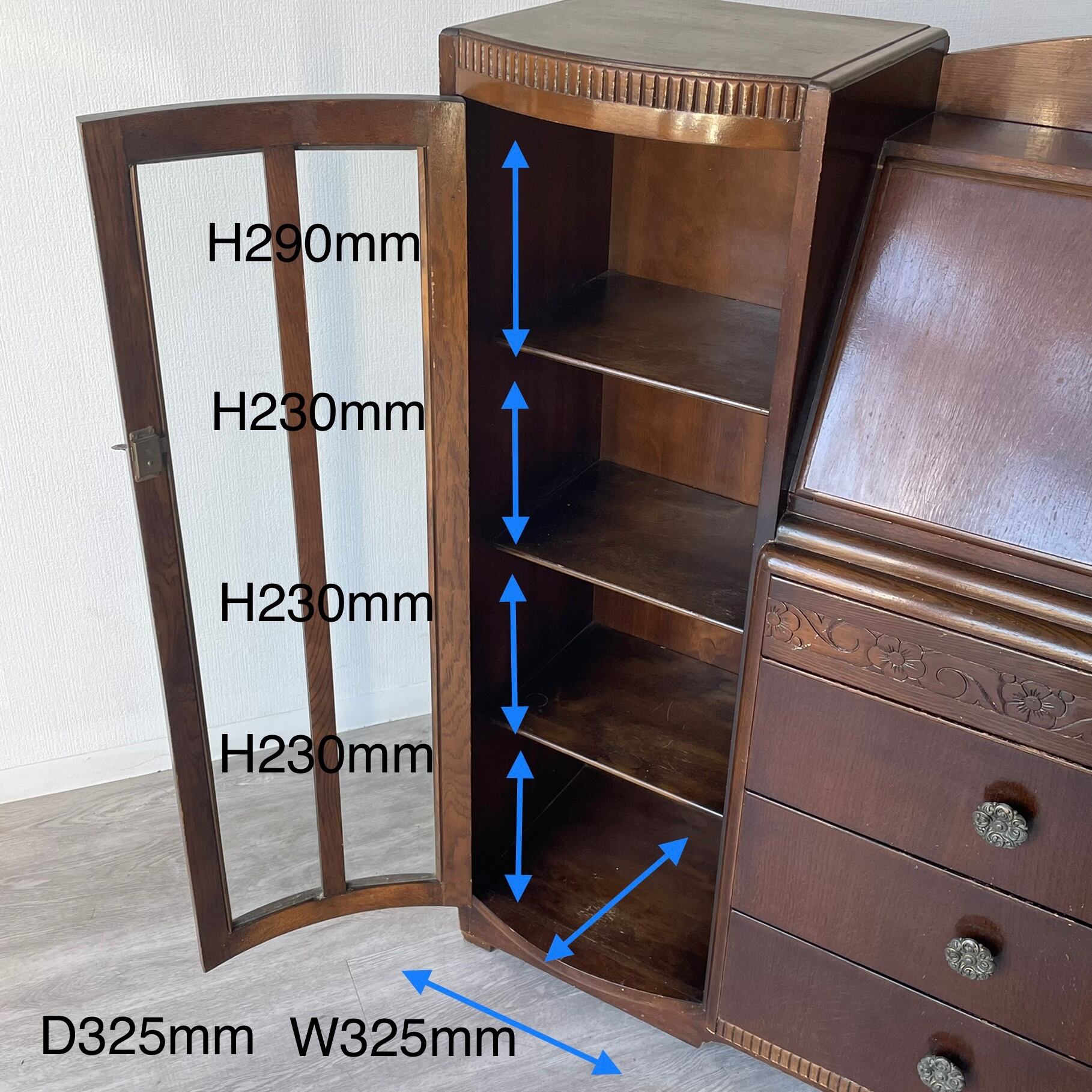 アンティーク・ビンテージ家具ならではの経年によります使用傷、凹み傷、色むらがございます。