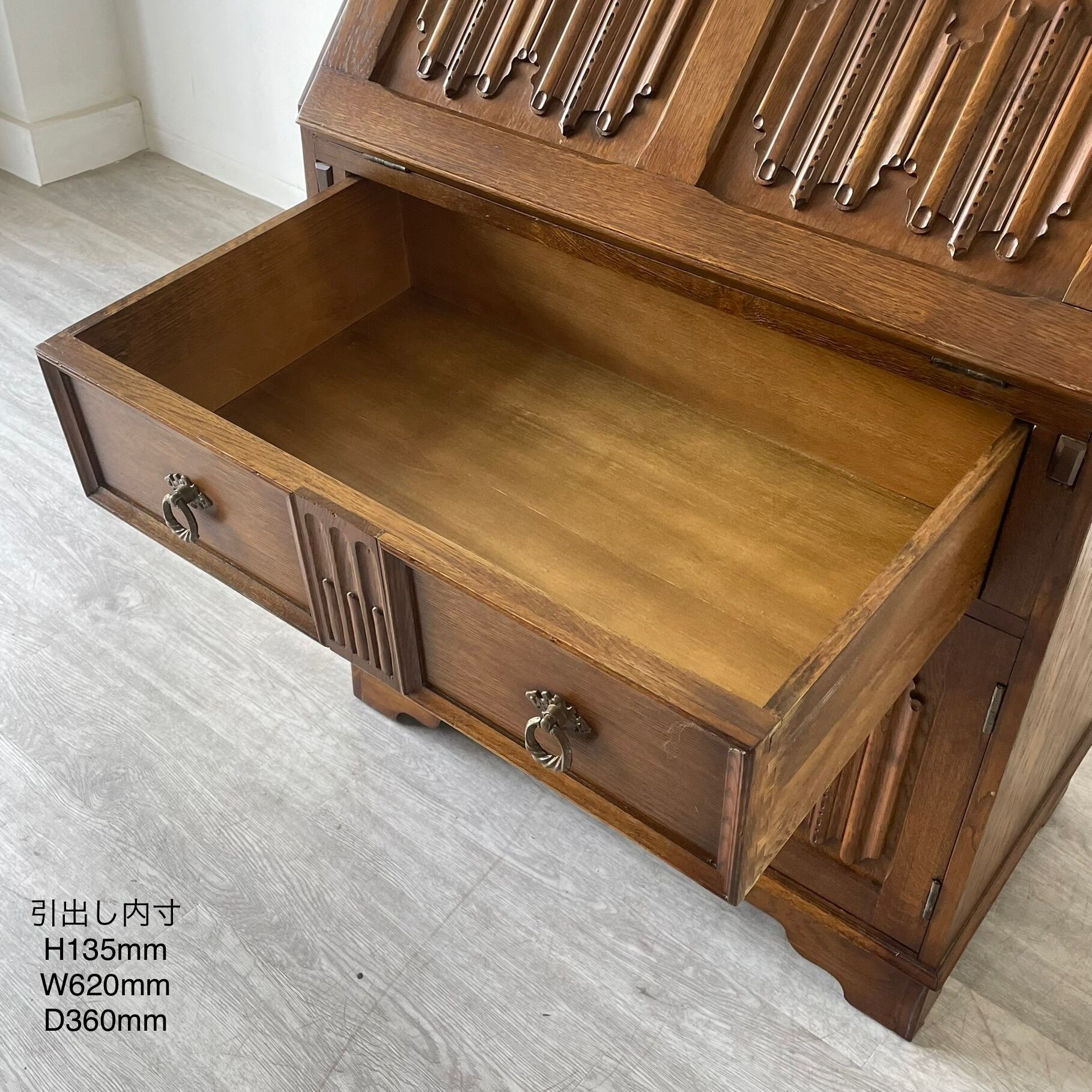 アンティーク・ビンテージ家具ならではの経年によります使用傷、凹み傷、色むらがございます。