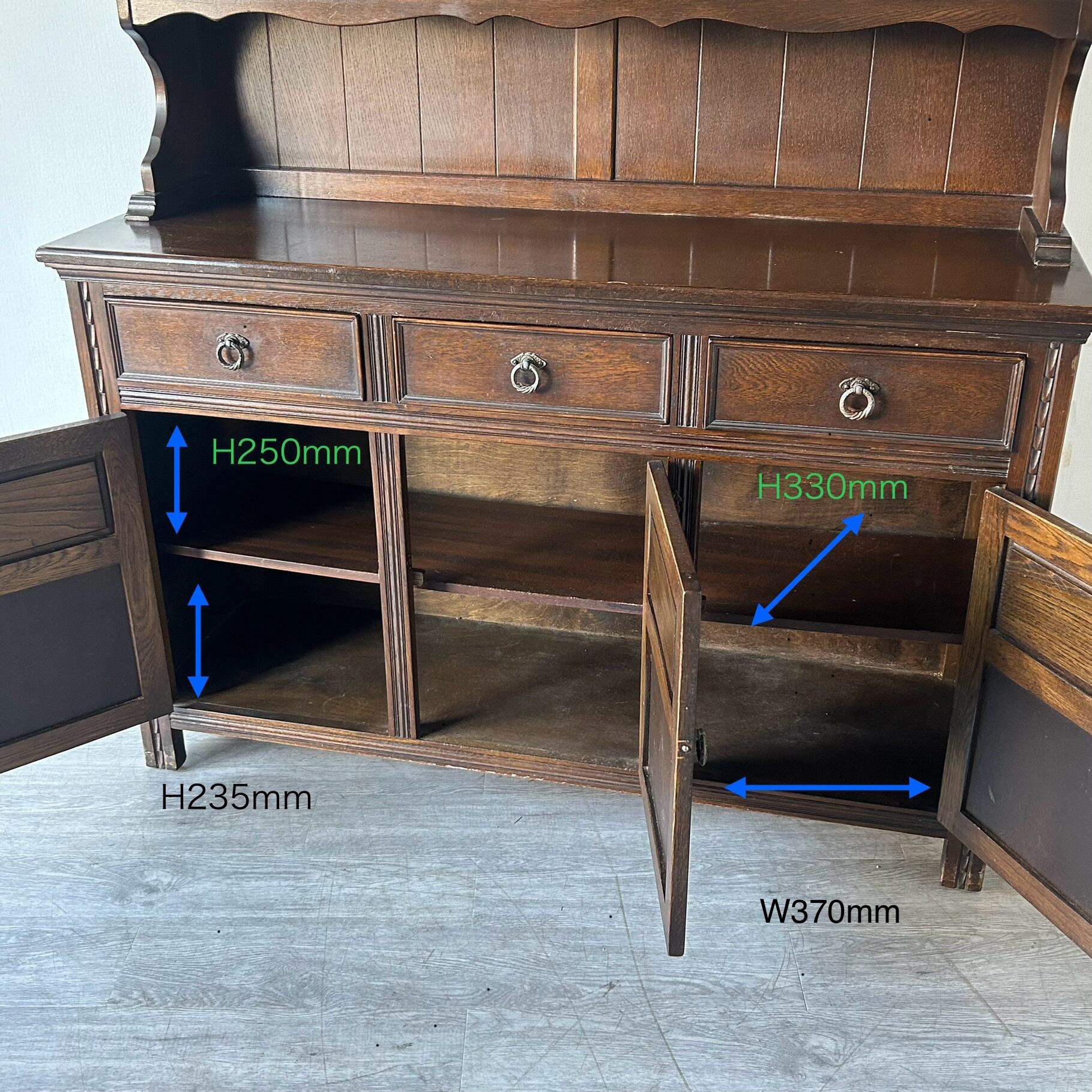 アンティーク・ビンテージ家具ならではの経年によります使用傷、凹み傷、色むらがございます。