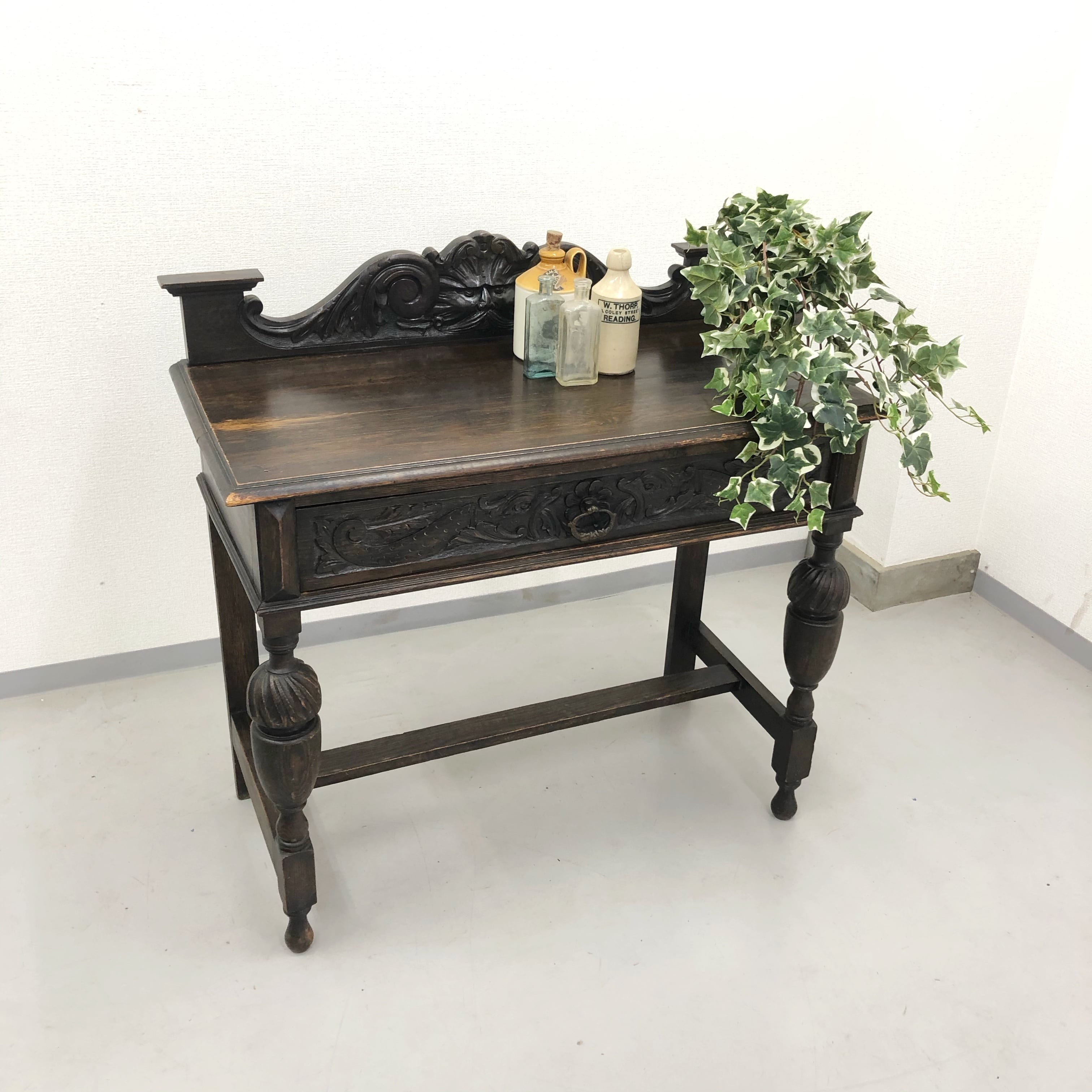 アンティーク・ビンテージ家具ならではの経年によります使用傷、凹み傷、色むらがございます。