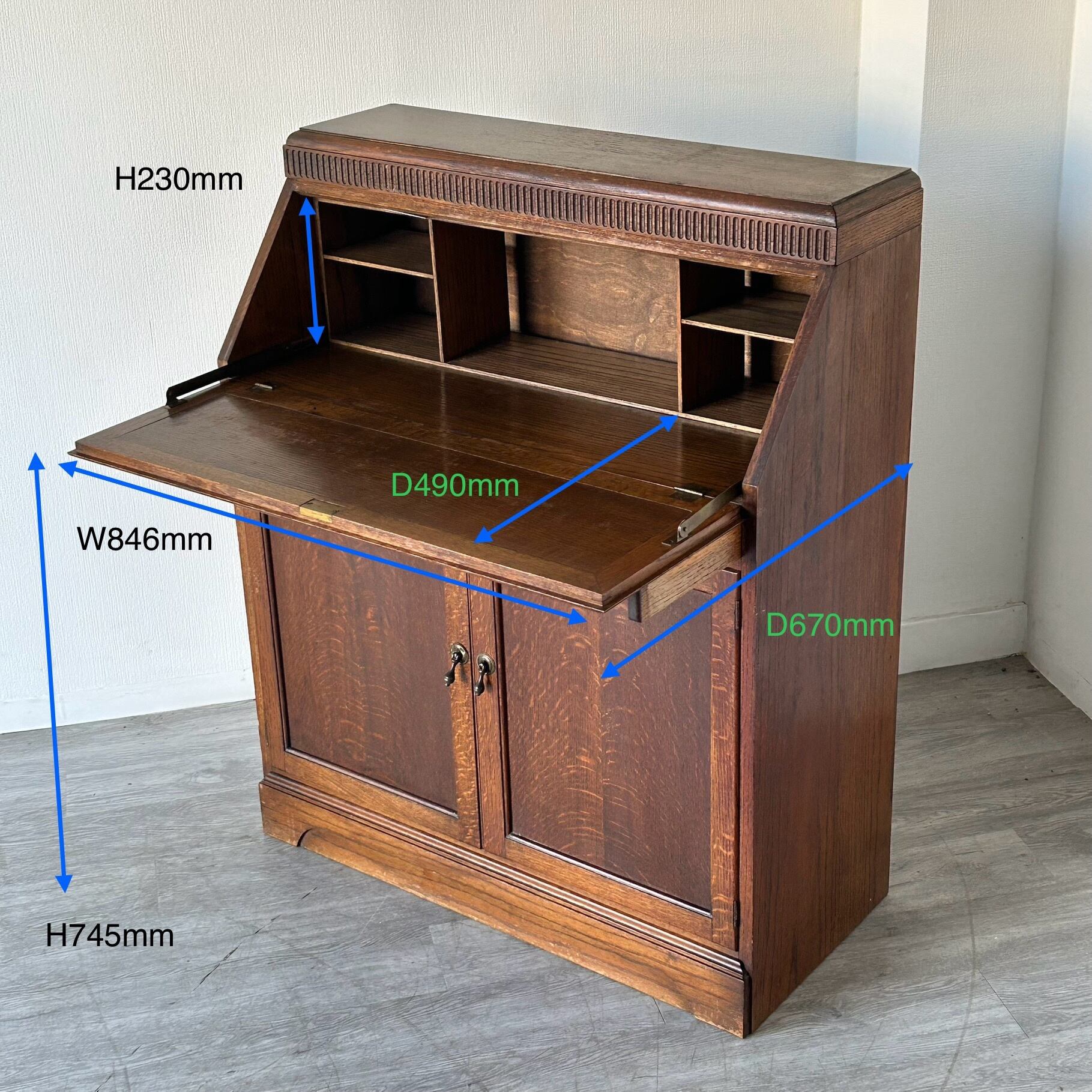 ビューローとは扉を開けるとデスクになる便利な家具です。