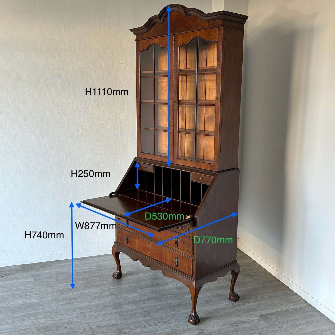 ビューローとは扉を開けるとデスクになる便利な家具です。